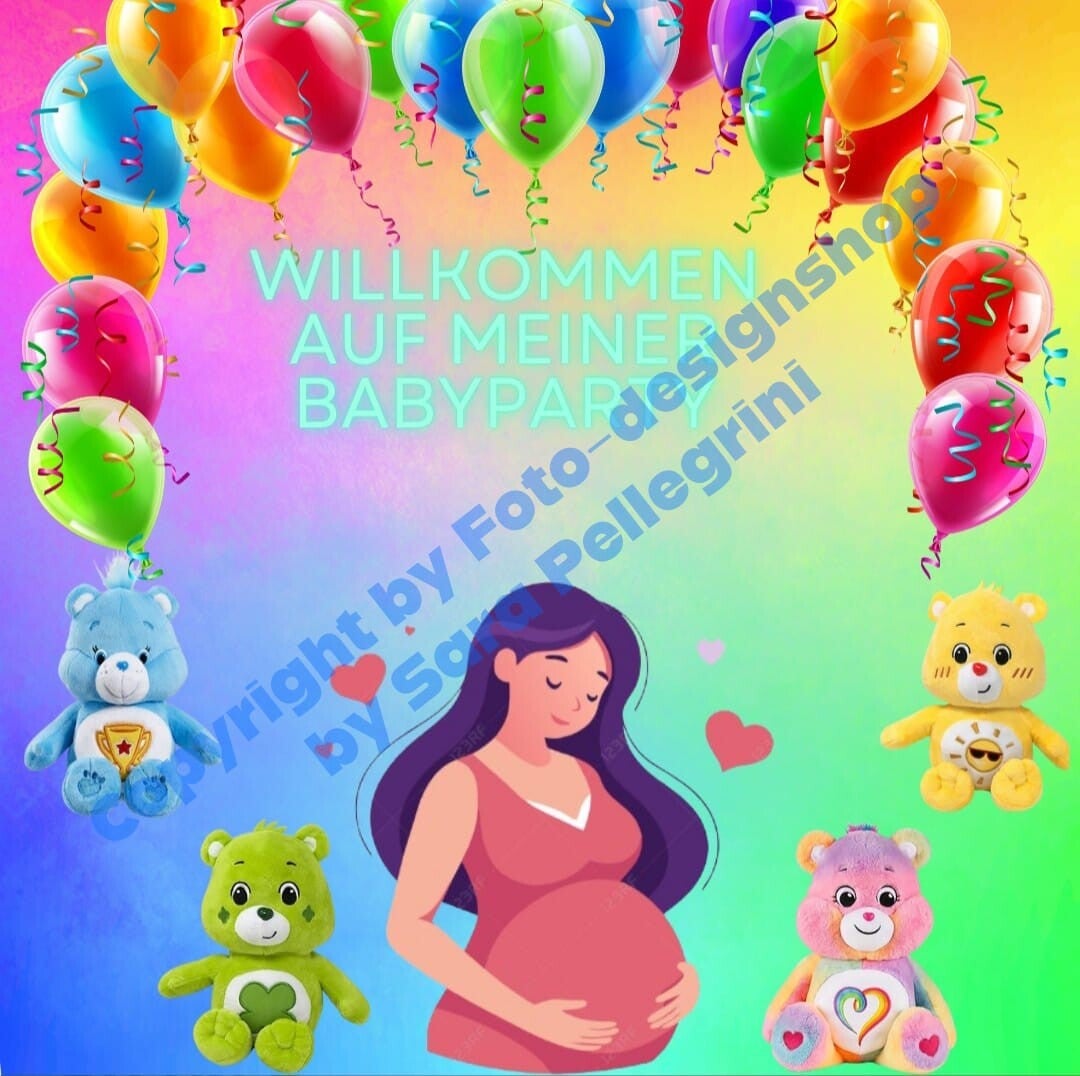 Beispiel einer selbst gestalteten Einladungskarte für einer Babyparty auch in verschiedenen Varianten möglich, mit eigenem Foto, in Absprache mit Kunde